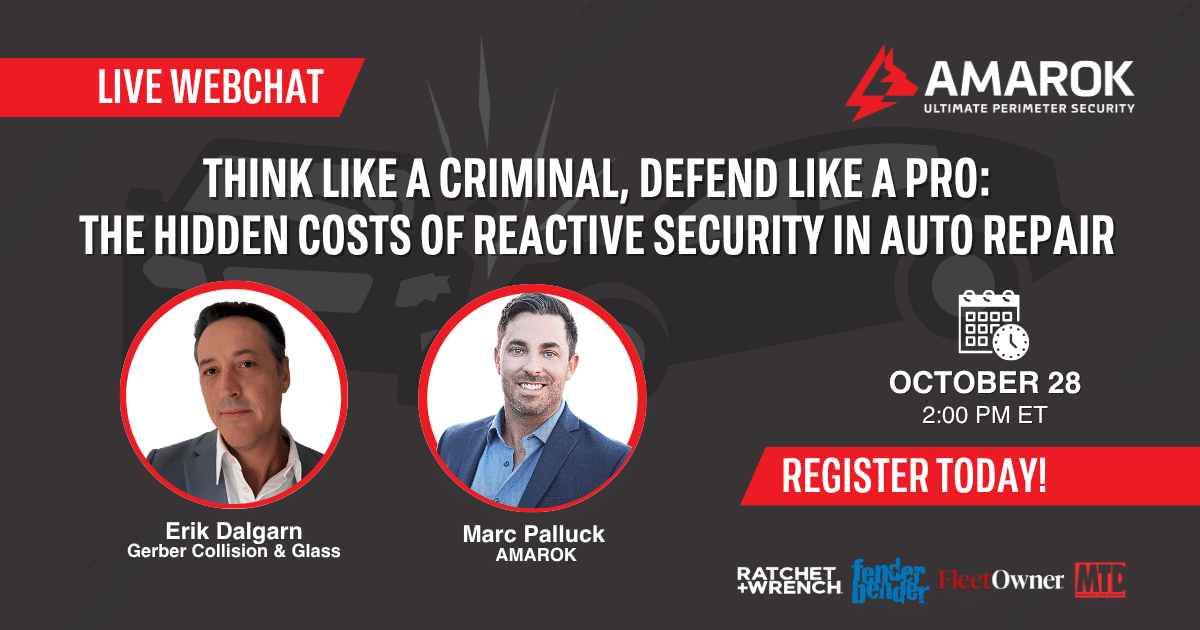 Protect vehicles, parts, accessories, and the tools used to maintain them with an integrated perimeter security solution for collision centers from AMAROK.